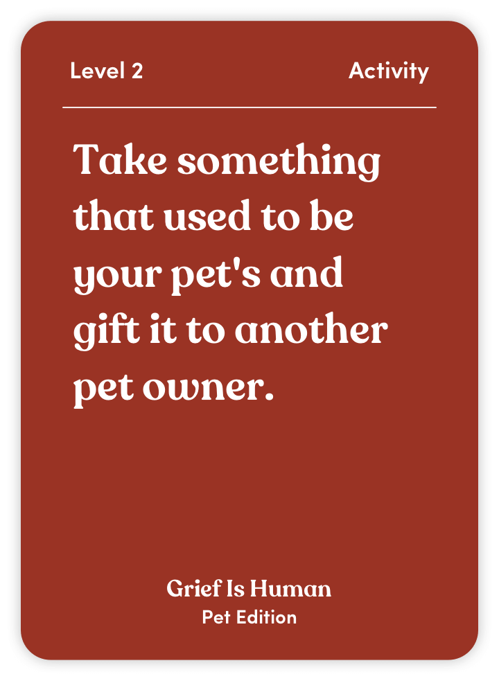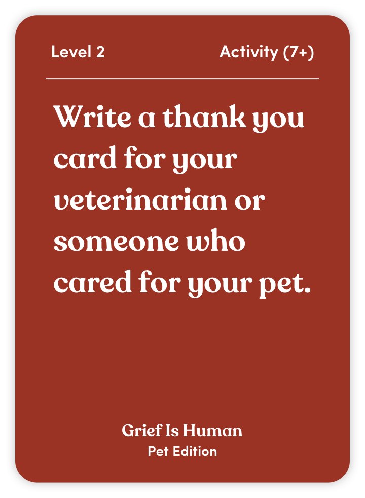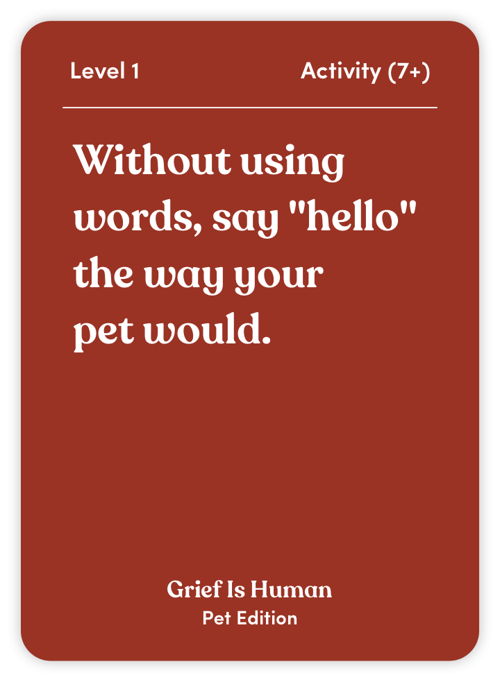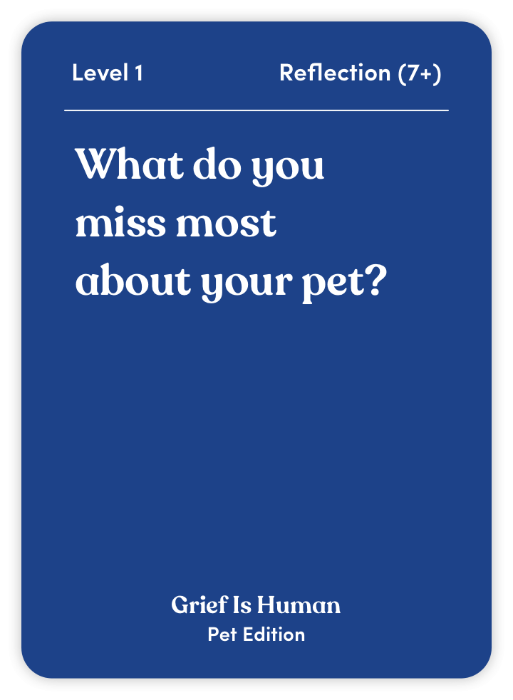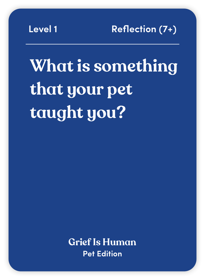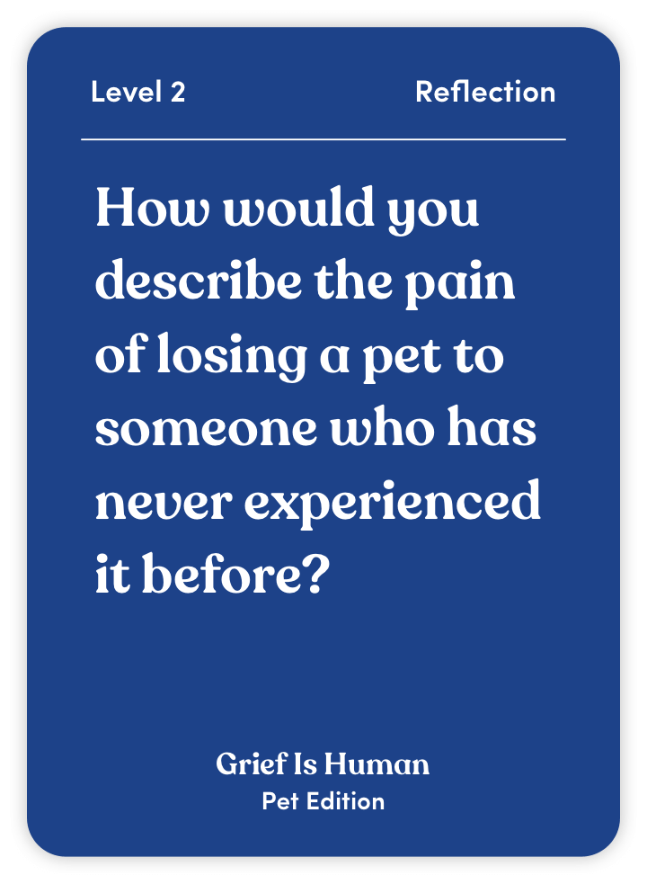 Grief Is Human (Pet Edition) is your guide to processing the loss of a cherished animal companion. With 70 thoughtful questions and activities, this deck helps you: